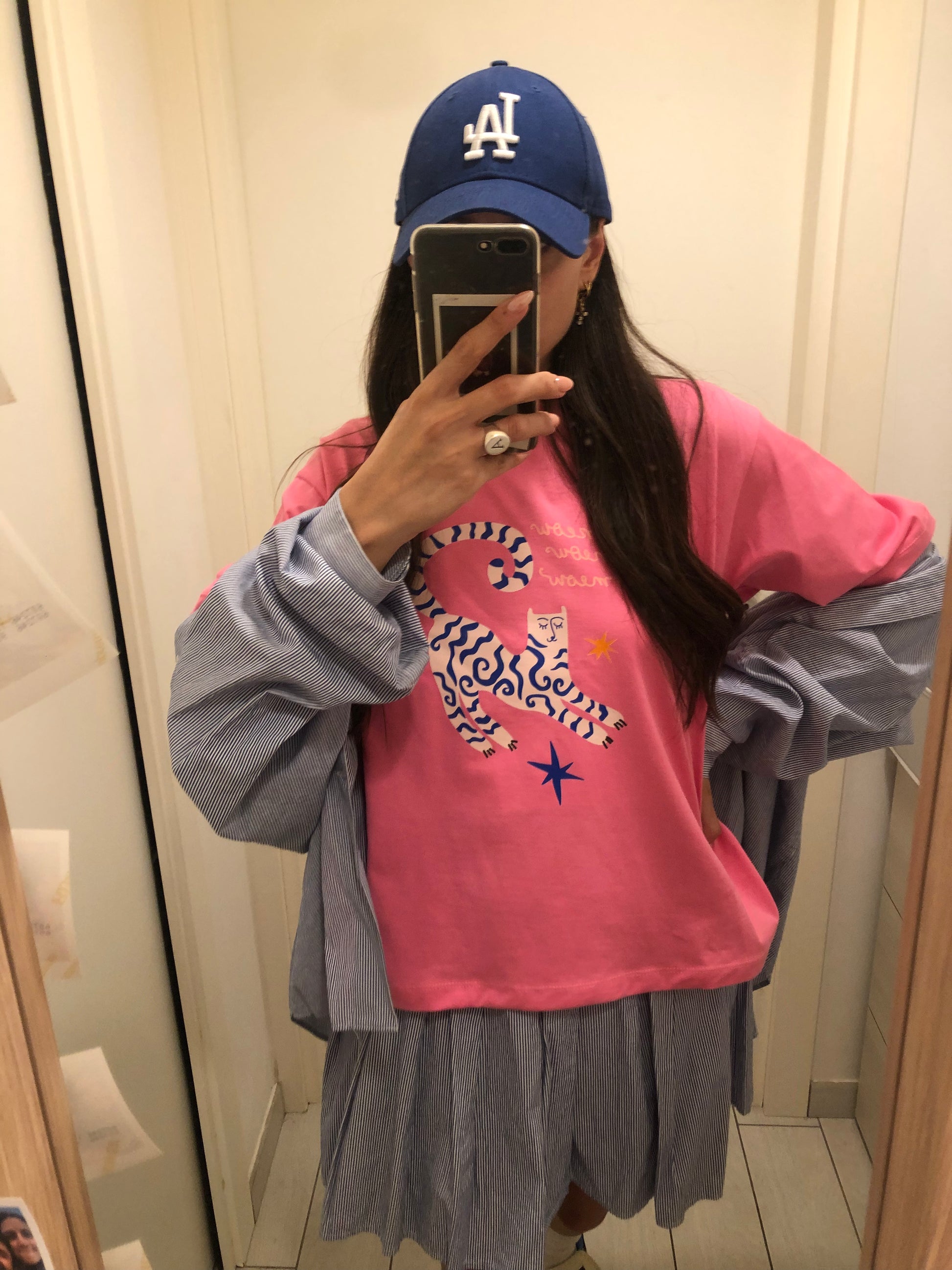 T-shirt rosa con stampa tigre dalla vestibilità drop. Taglia unica
